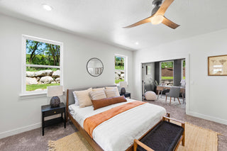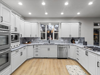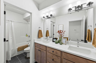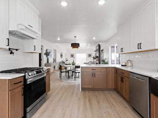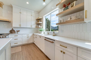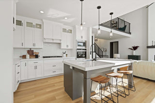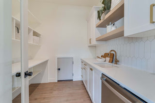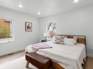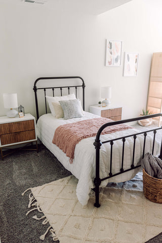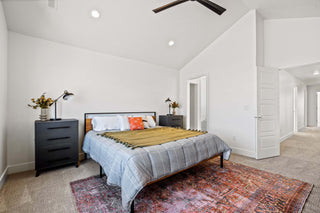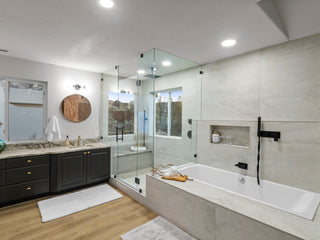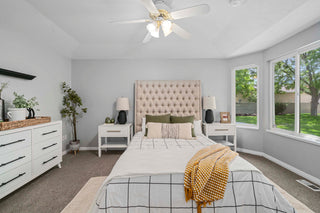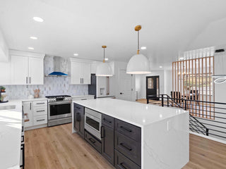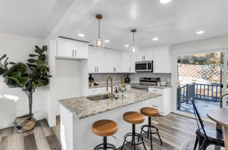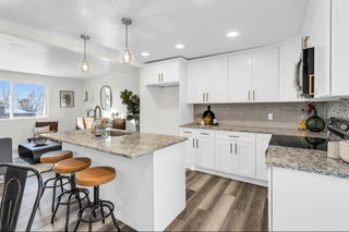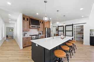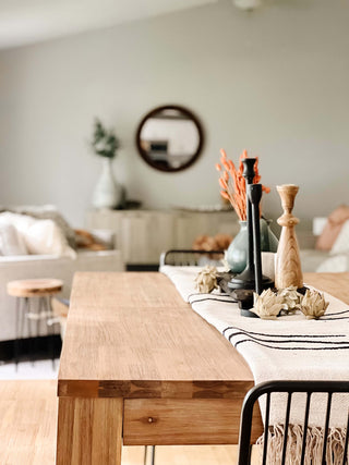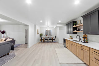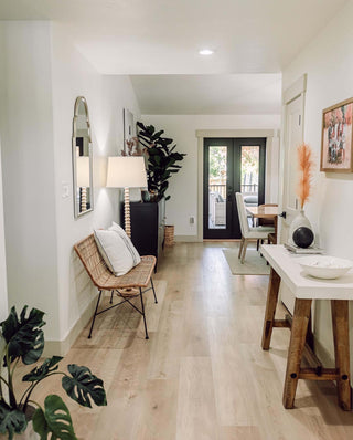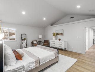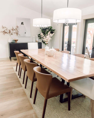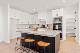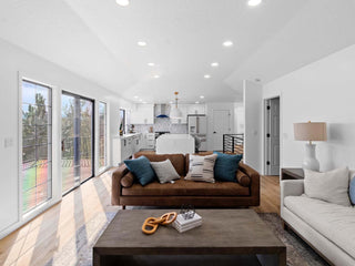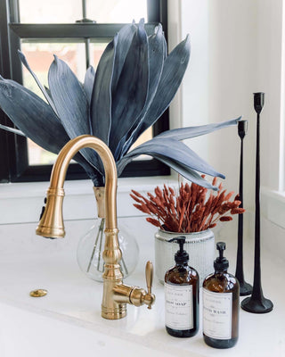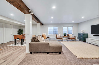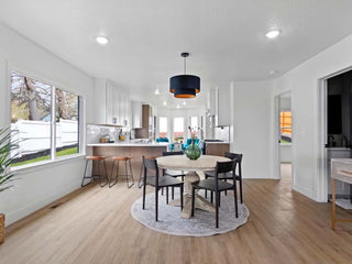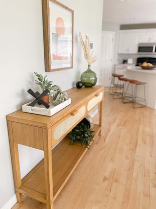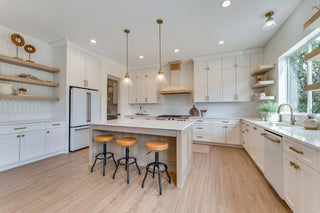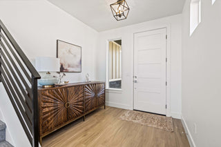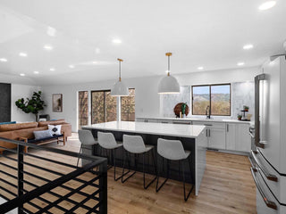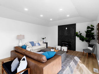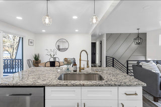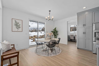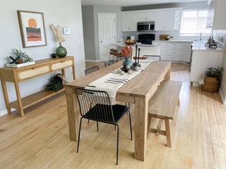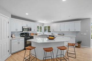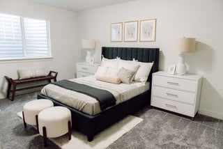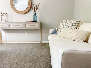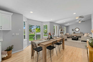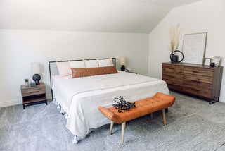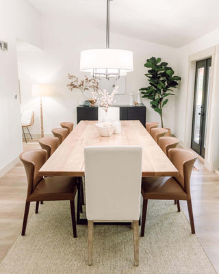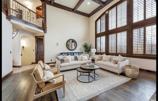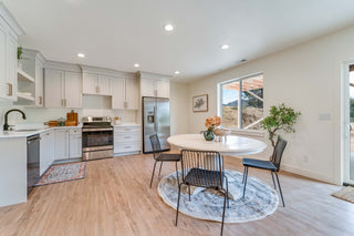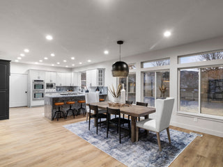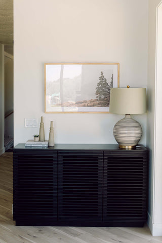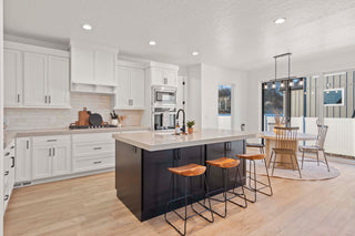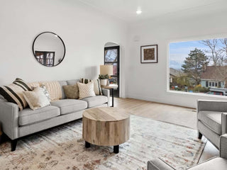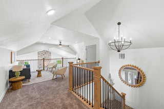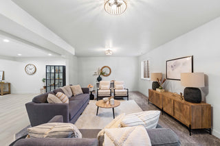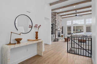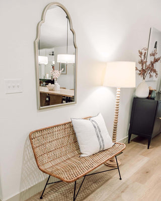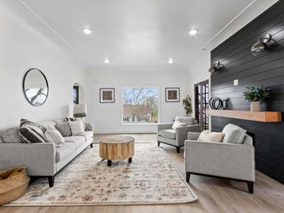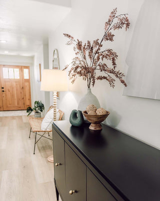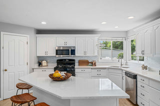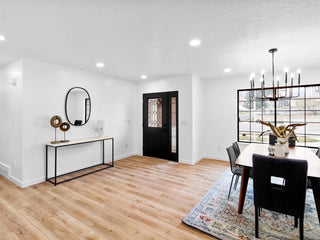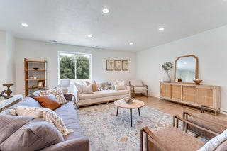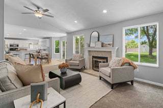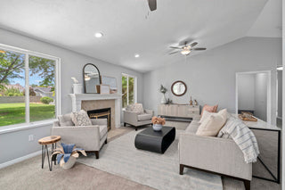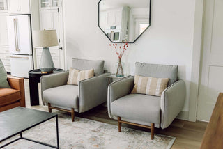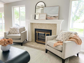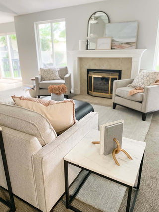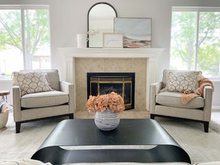 Traditional spaces with dark accents can feel heavy. We update the space with lighter-feeling furnishings so it feels updated and fresh.